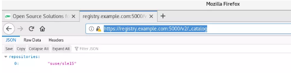 现在,私有 docker 注册表已经设置完毕,可为容器镜像提供服务。您可以从 SUSE 的官方文档中找到更多关于创建和存储基于 SLES 的容器镜像的说明,