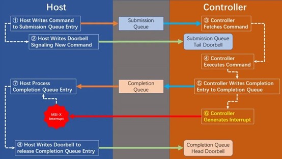 1、主机将命令写入 Submission Queue(提交队列)