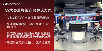 EonStor GS是高清视频后期协作的理想 NAS 解决方案,支持超过300个高清视频流的并发播放。支持媒体行业主流的编辑软件 : Adobe Premiere Pro、Apple Final Cut Pro、DaVinci Resolve。预装 DaVinci Resolve 项目服务器,编辑人员可以轻松同步进行协作编辑。GS 3000 Gen2 兼顾性能与成本,具备经济高效的高密度存储。最近一个国家级媒体集团就采用GS 3000  4U 60 盘位可靠的PB级存储解决方案,对于大量不断增长的媒体内容进行备份和归档,确保服务的连续性。