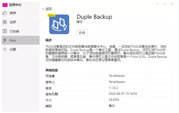 重要数据当然要进行多重备份,除了将电脑中的数据备份至NAS外,还可以利用双重备份(Duple Backup)将TNAS中的数据再做一次备份,甚至异地备份。