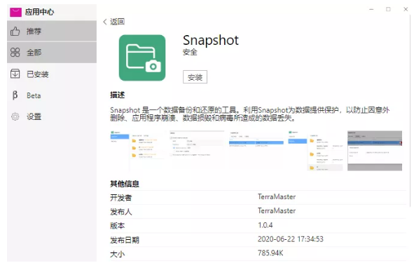 铁威马TOS应用中心有多种应用,通过NAS可以集中备份电脑、云盘、服务器等平台的数据,手残党误删文档,快速恢复那都不叫事儿!