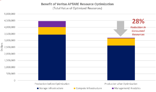 1.基于真实的建模数据,APTARE IT Analytics帮助客户在现有生产环境中减少了28%的总资源消耗
