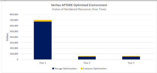 上图中,ESG分析了随时间变化,消耗IT资源减少所带来的价值。资源优化最显著的收获发生在第一年。由于环境运行效率提高,后两年效果不如第一年,占据额外的4%。值得注意的是,该为期三年的分析中预估了10%的数据增长。