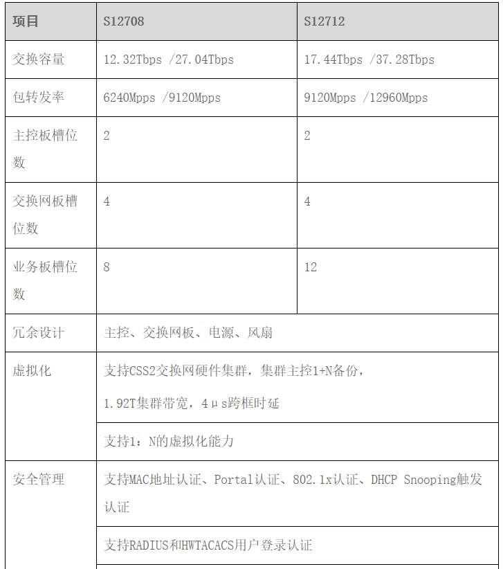 S12700系列交换机是华为公司面向下一代园区网核心而专门设计开发的敏捷交换机。该产品采用全可编程架构,灵活快速满足客户定制需求,助力客户平滑演进至SDN网络。该产品基于华为公司首款以太网络处理器ENP,内置随板WLAN AC无线局域网接入控制器,实现有线无线真正融合;支持iPCA网络包守恒算法,可对任意业务流随时随地逐点检测,助力客户对业务的精准管理。该产品基于华为公司自主研发的通用路由平台VRP,在提供高性能的L2/L3层交换服务基础上,进一步融合了MPLS VPN、硬件IPv6、桌面云、视频会议等多种网络业务,提供不间断升级、不间断转发、CSS2交换网硬件集群主控1+N备份、硬件Eth-OAM/BFD、环网保护等多种高可靠技术,在提高用户生产效率的同时,保证了网络最大正常运行时间,从而降低了客户的总拥有成本(TCO)。