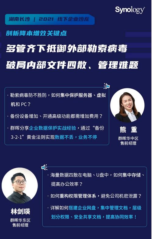 6/10 群晖企业沙龙-长沙站诚邀您参加,企业网管、 IT 、网络运维小哥可以现场深入了解群晖 NAS 如何逐个击破以上困扰企业的难题。图片