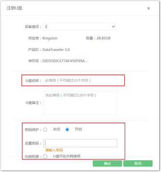 1、插入U盘,点击【注册U盘】,填写U盘信息;
