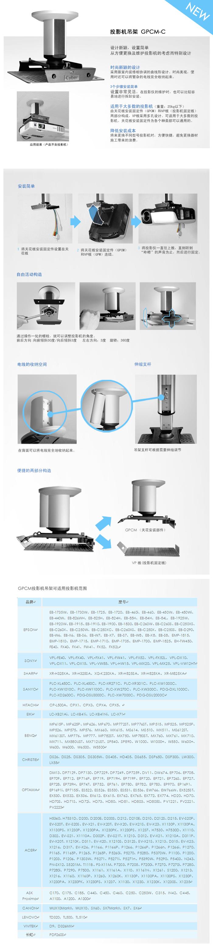 美视(grandview) 投影机吊架 GPCM-C 系列 吊顶式