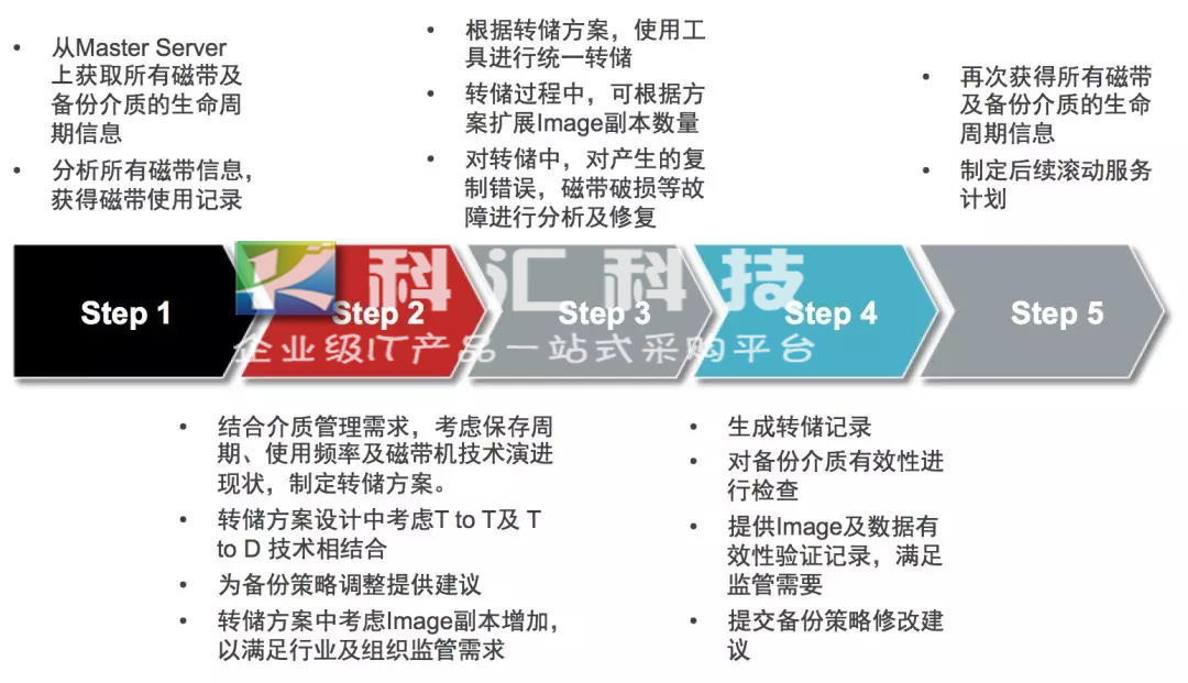 磁带转储服务采取专家分析及工具自动化执行批量磁带复制工作,通过从备份主服务器获取磁带信息,制定转储方案,使用工具进行统一转储,最终生成转储记录、备份介质前后对比报告、数据可用性审计记录、备份策略及备份介质管理建议和备份介质管理持续改进计划的服务。