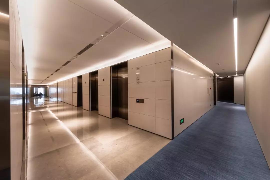 在封闭的长廊里,照明过暗或过亮,会让人感到不舒适。中国华润大厦采用暖色LED灯带照亮走廊,灯光低调,同时也和大楼整体的设计和谐统一,突出简洁清爽的现代感。