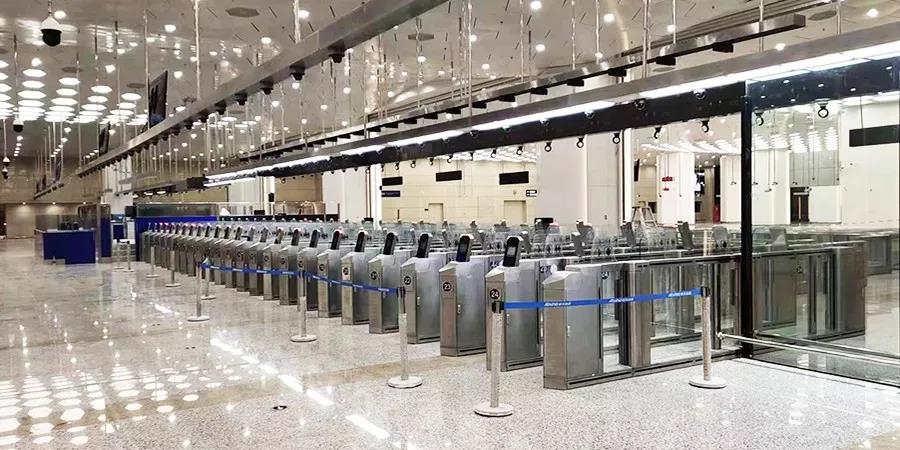 新横琴口岸总建筑面积达45万平方米,相当于63个足球场,在出、入境大厅分别设置了合作自助通道24+24条,传统人工通道6+7条,合作人工通道4+4条,并在出入层各预留了29+19条自助通道来探索更为便捷的通关模式。