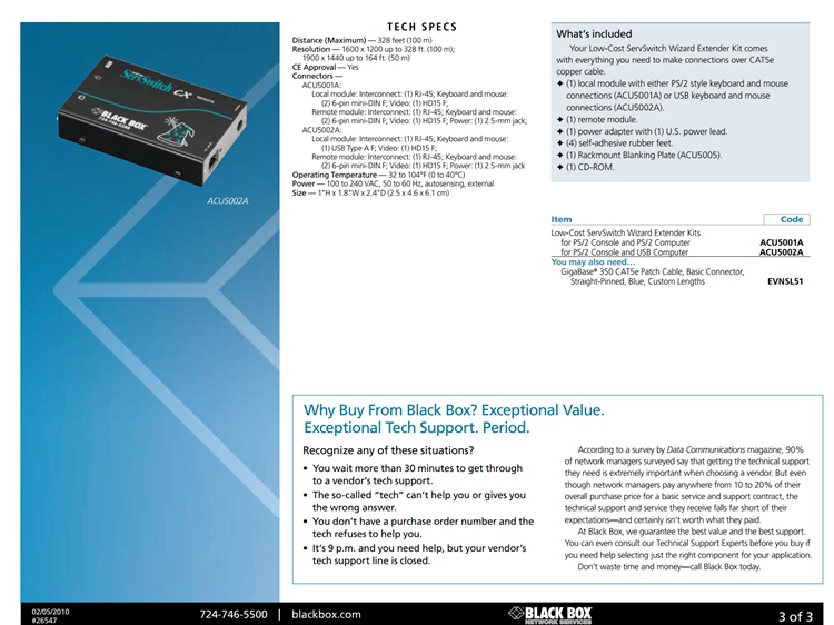 美国黑盒,黑盒,BLACK BOX,ACU5001A,724-746-5500,ServSwitch~cx,REMOTE