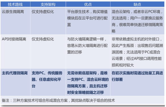 当越来越多的用户开始转为更为灵活的微隔离方案时,选择哪种技术路线成为了问题的关键。当前微隔离方案技术路线主要有三种: