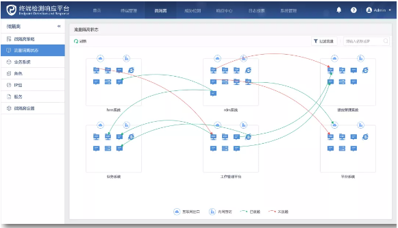1、端点安全、东西向流量立体可视:直观精确的观察到每个终端的异常行为,并定位排查问题,及时动态调整控制策略,实现端点安全域东西向流量的可视化。