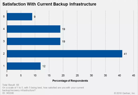 根据Gartner的调查,大部分的客户对当前的备份基础设施都感到不满意。因此,到2022年,将有40%的组织替换其在2018年初部署的备份应用。而且,根据最新的Gartner调查,越来越多的先进企业采用SDS(软件定义存储)来解决备份和归档数据量剧增带来的挑战。