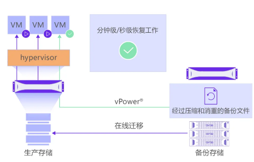 ODPF作为存储系统中的子系统,通过内嵌的虚拟机框架,灵活部署备份软件,形成数据闭环管理,为用户提供存储和备份一体化解决方案。存储与备份软件融合的优势在于能够充分使用自身的存储和计算资源,为用户节省成本的同时简化业务配置。