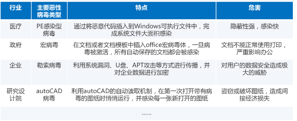 近年来病毒数量呈指数级增长,病毒类型层出不穷,给企业级用户造成了很大的安全威胁。其中,经深信服千里目安全实验室分析,以影响业务连续性却难以处置的恶性病毒影响尤为突出。