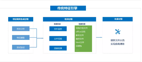 而传统病毒检测采用的是基于静态特征分析和规则匹配的方式,面对多变的恶性病毒,无论是检测能力还是修复效果上,都存在明显的不足。