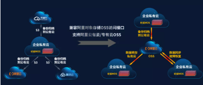 传统的企业存储通常只有将数据备份归档到公有云的能力,杉岩数据与阿里云在深入合作的基础上,推出了相对传统方案更强大的混合云存储,除了备份和归档到公有云,这套方案还支持数据双向互通,用户可以将公有云的数据转存到企业的杉岩对象存储。