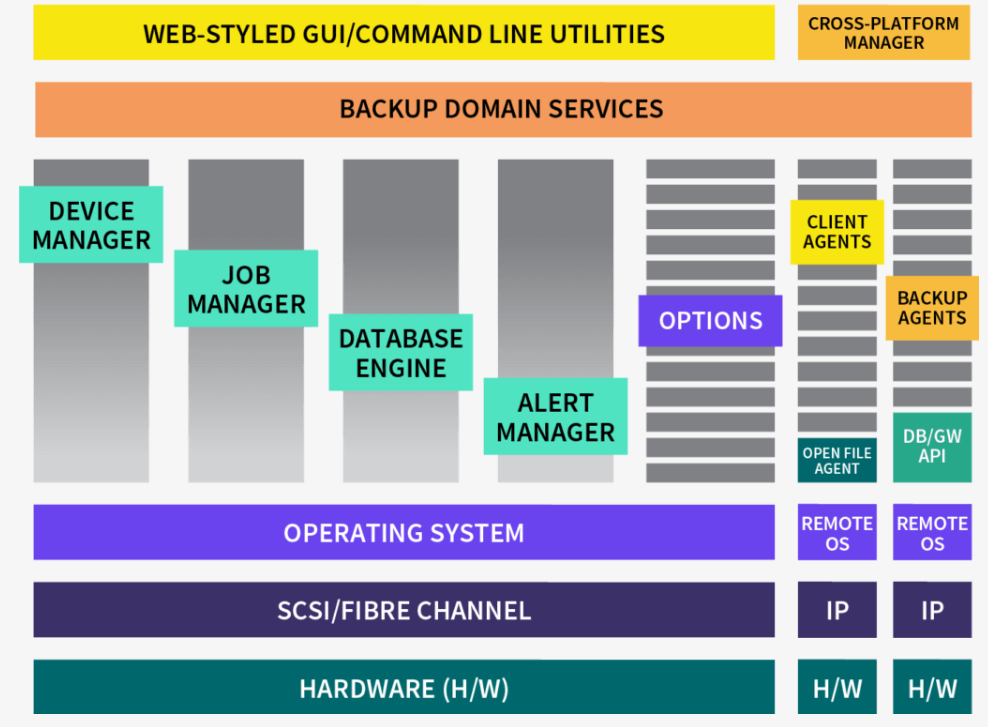 - 通过磁盘备份、磁带备份、磁盘到磁盘到磁带(D2D2T)、磁盘到磁盘到云(D2D2C)、虚拟磁带库(VTL)、硬件快照支持、多路复用和多数据流,满足特定应用的要求