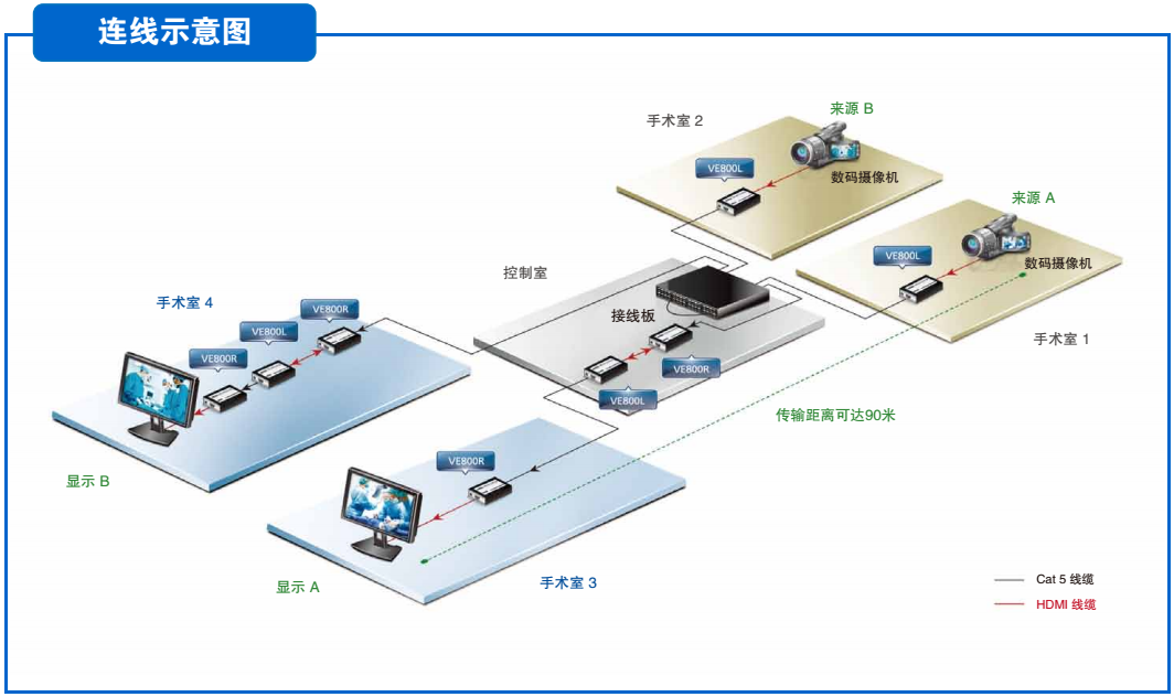 l 可从HDMI手持摄影机稳定的将手术影像传送至另一个手术室的HDMI LCD电视上